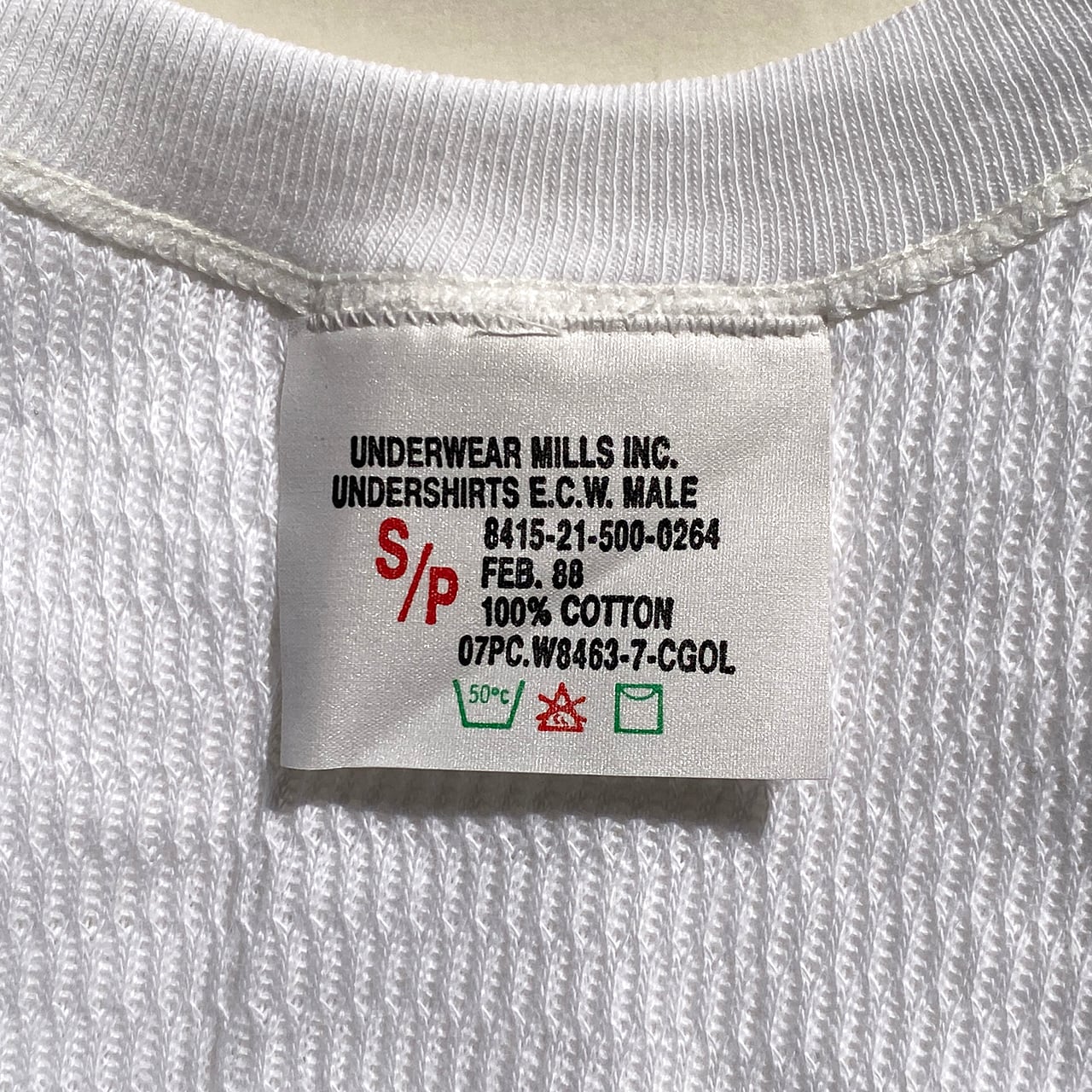 1980年代にカナダ軍へ納入された、極寒地(E.C.W. - Extreme Cold Weather)用のコットンサーマルアンダーシャツです。