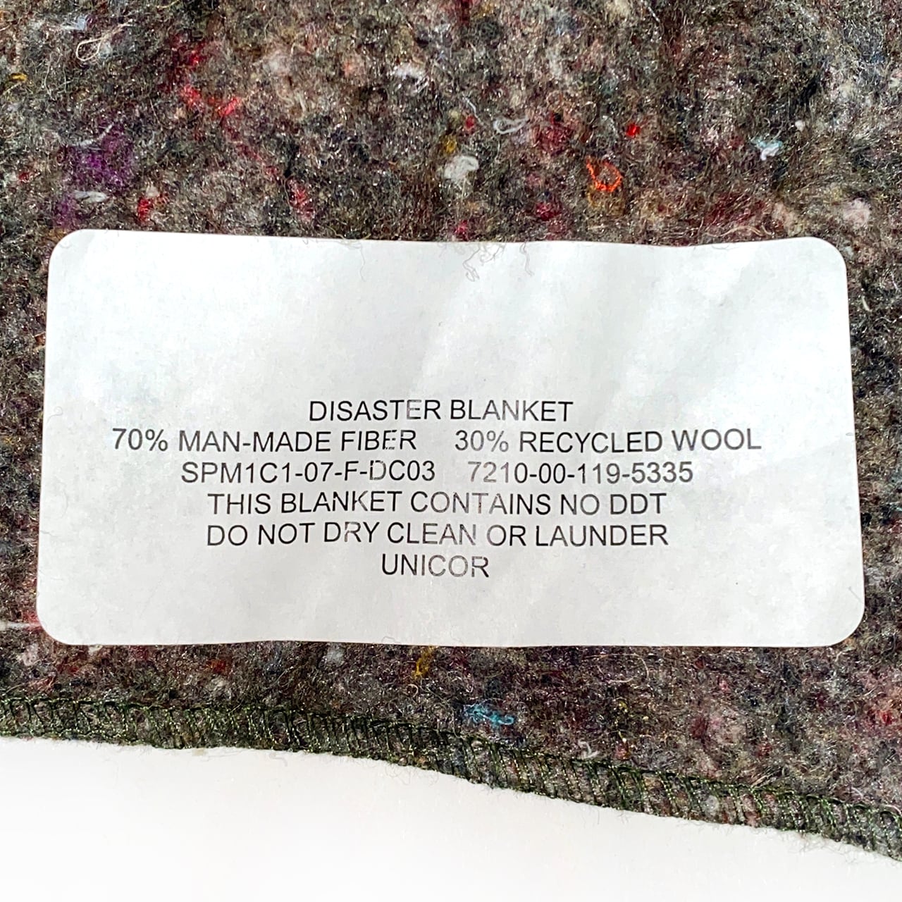 【コメント】 自然災害時のシェルター等で使用される、リサイクル素材で作られたアメリカ軍のブランケットです。