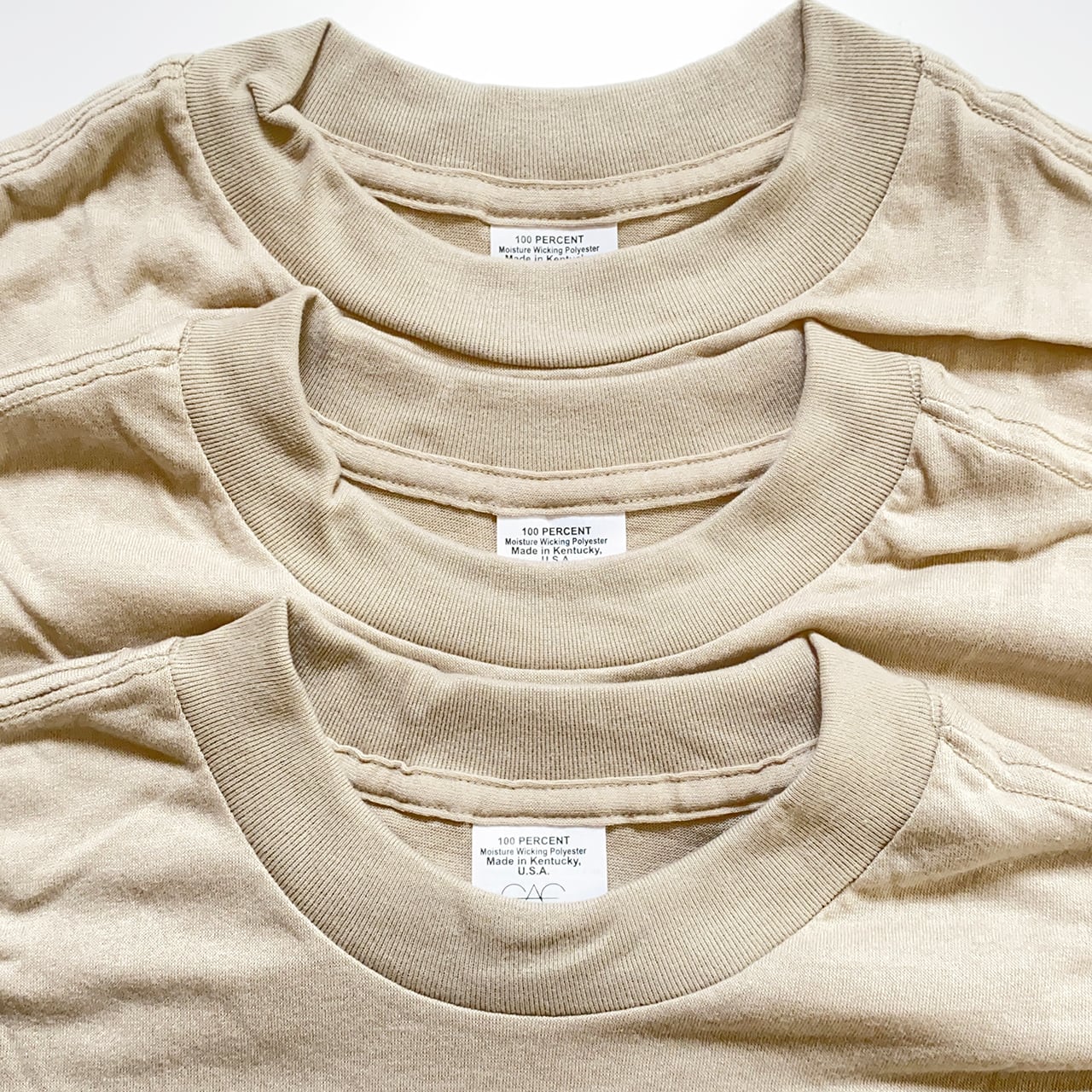 【コメント】アメリカ軍の3枚入りパックTシャツで、速乾性に優れたポリエステル100%のボディ。インナーだけでなく、一枚でも着れる程よい厚さ。普段着、スポーツ、アウトドア、部屋着と様々なシーンで使えます!