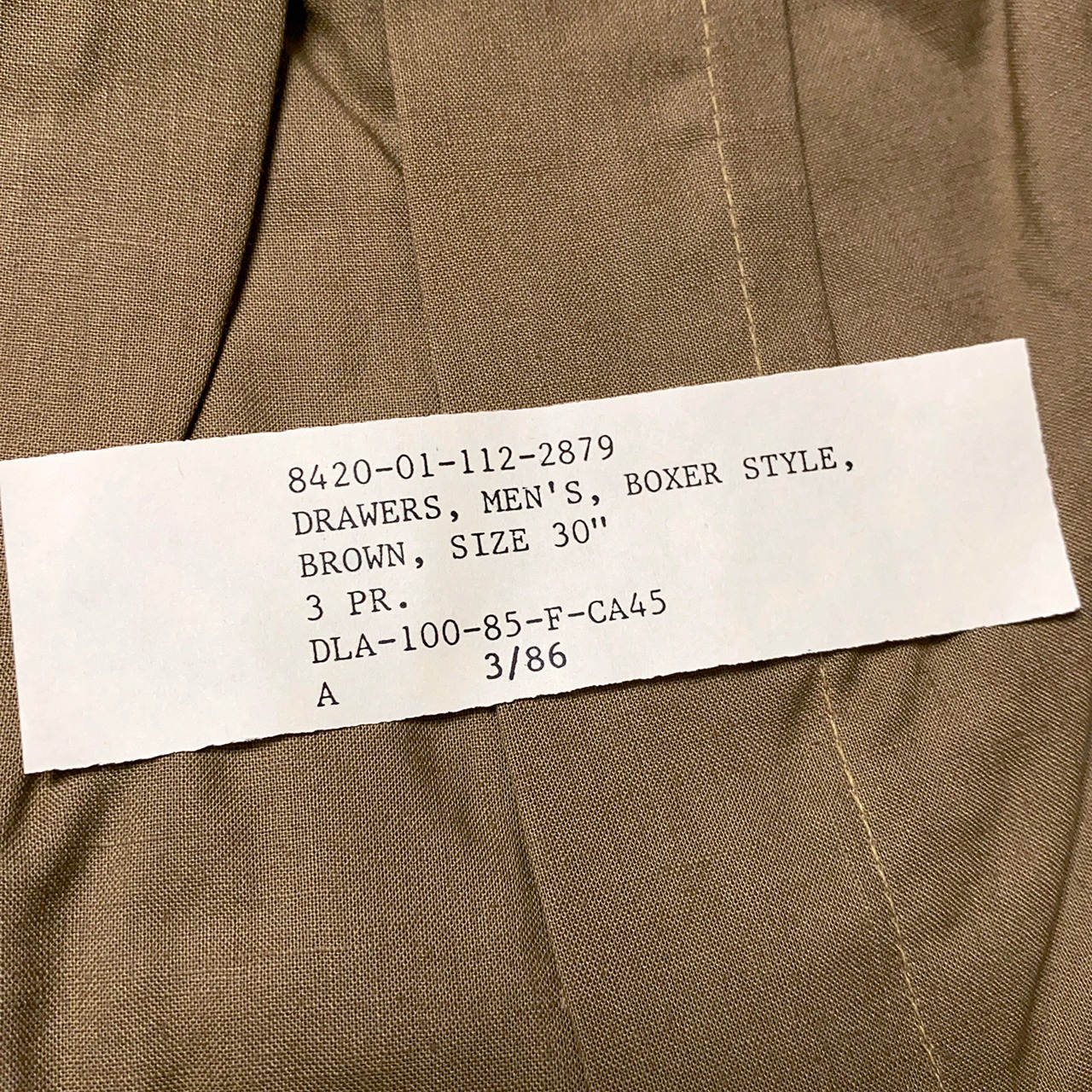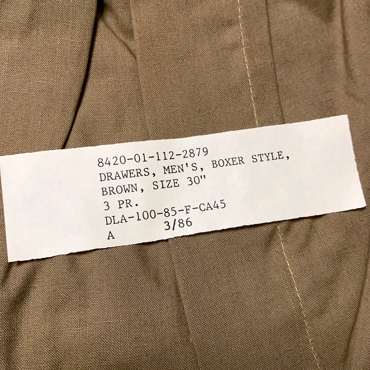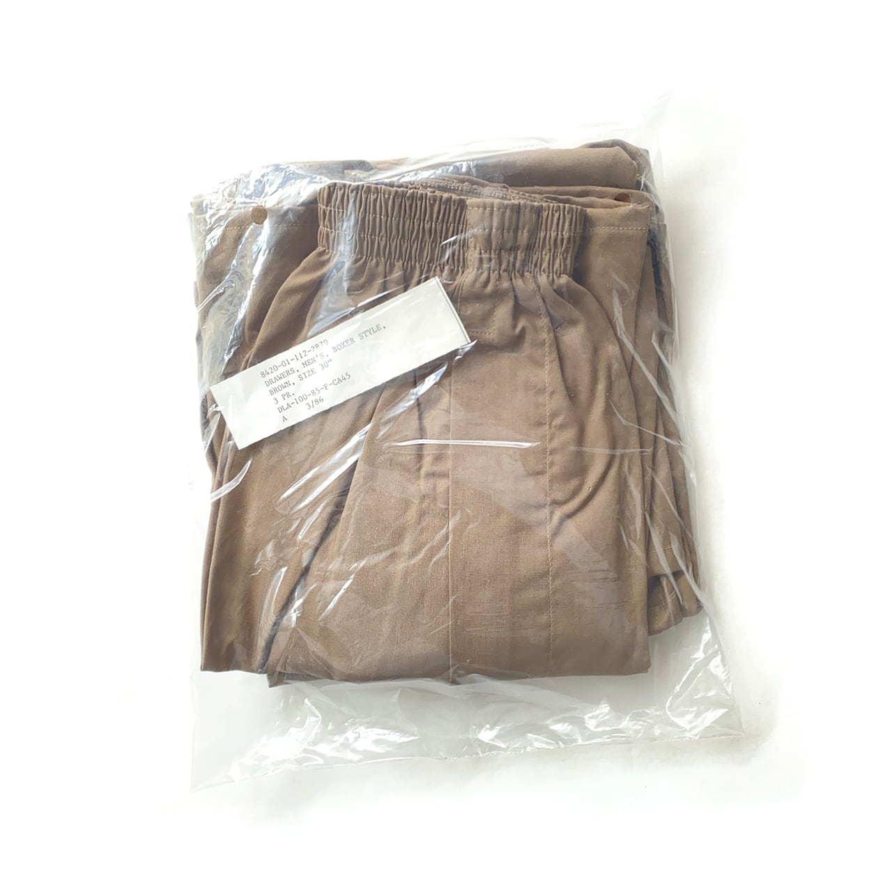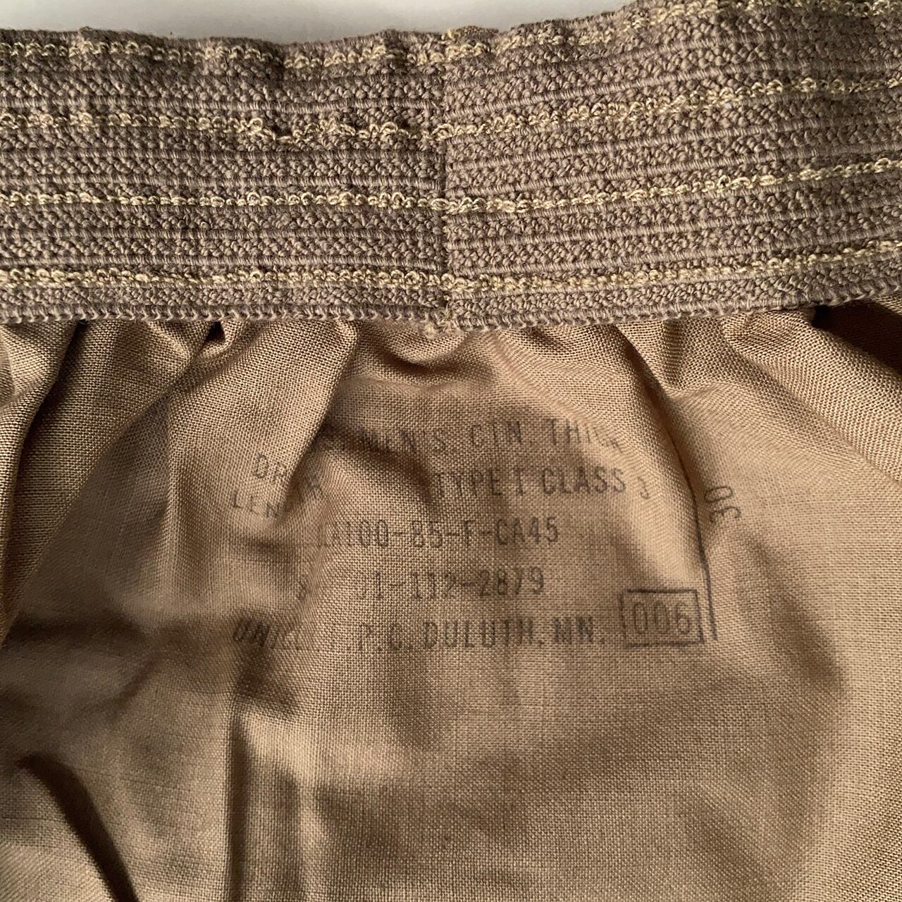 珍品?アメリカ軍のボクサー型ドロワーズで、平たく言うと下着のトランクス。3枚セットで、当時の80年代のパッケージに入ったデッドストックになります。シンプルでデイリーに使えます。トランクス派の方はお見逃しなく!!