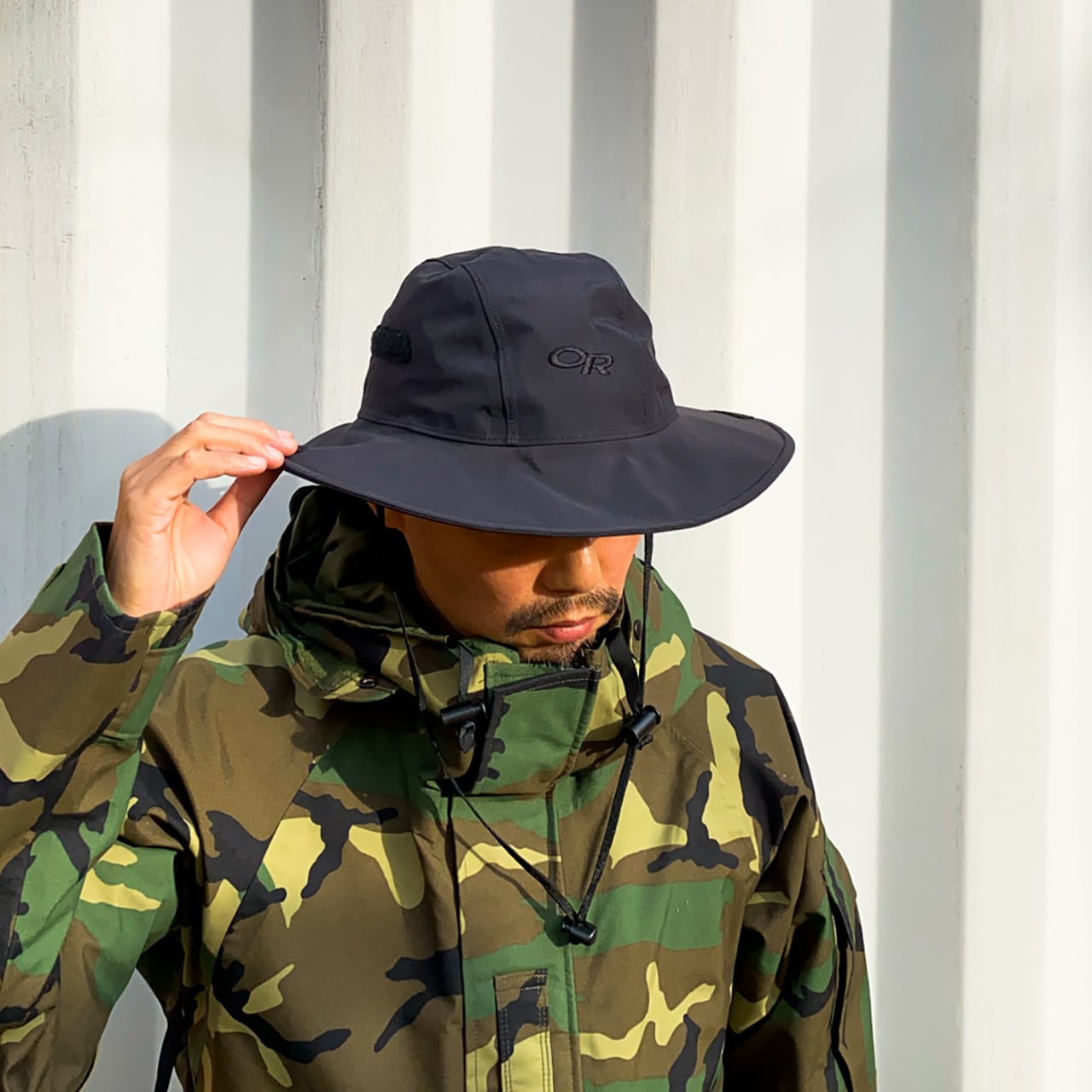 【コメント】アメリカ軍に納入された「アウトドアリサーチ /OR」のGORE TEX素材のハードシェルハット。米国のアウトドア雑誌「Backpacker® 」で賞にも選ばれた、OR社の定番のレインハット「Seattle Sombrero(シアトル ソンブレロ)」。