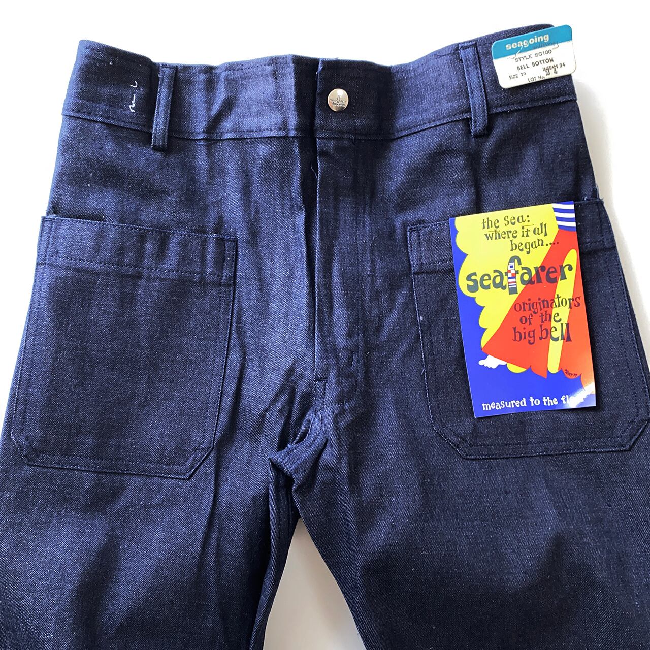 長きに渡りアメリカ海軍"U.S.Navy"にセーラーパンツやシャツなどのアイテムを納入している"SEAFARER"社。こちらは官給品ではなく民間品の80年代頃のモノと思われます。クラシックなUSネイビーのデニム(ダンガリー)パンツ。「ベルボトム」「セーラーパンツ」「マリンパンツ」「フレアーパンツ」などと呼ばれる、裾が広がっているスタイル。前後に2つずつパッチポケットが付属。ブラス製の「42 TALON」ジップも嬉しいポイント。