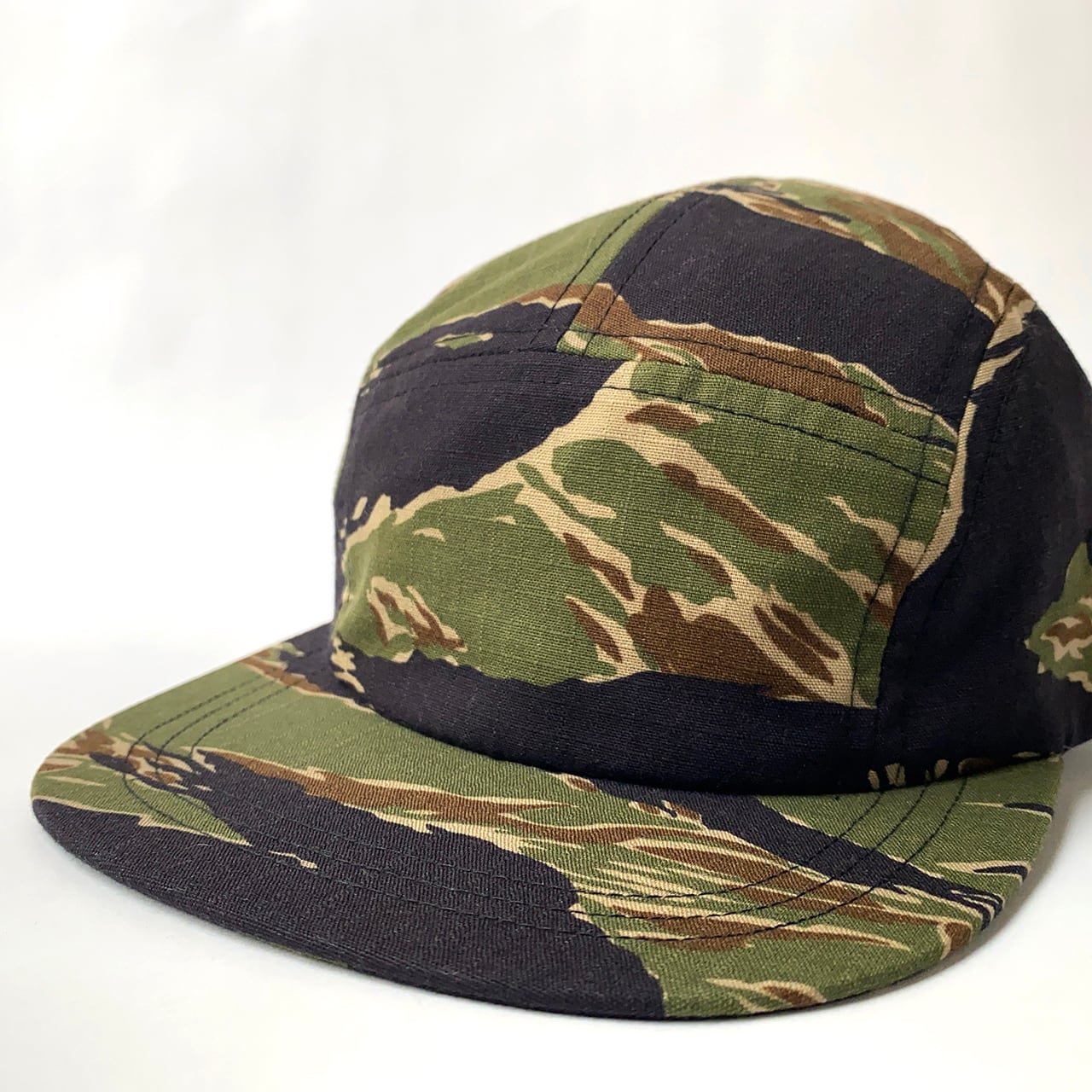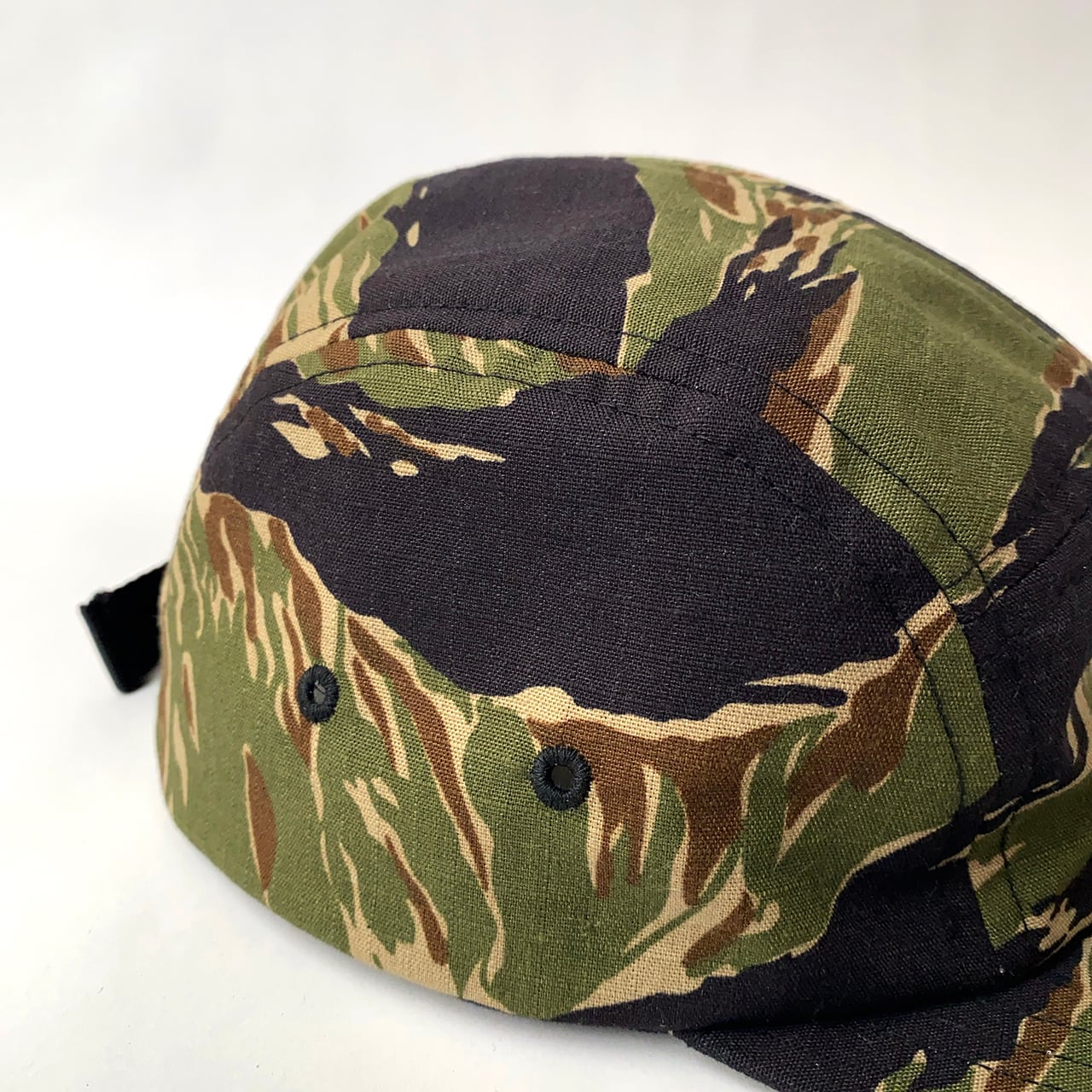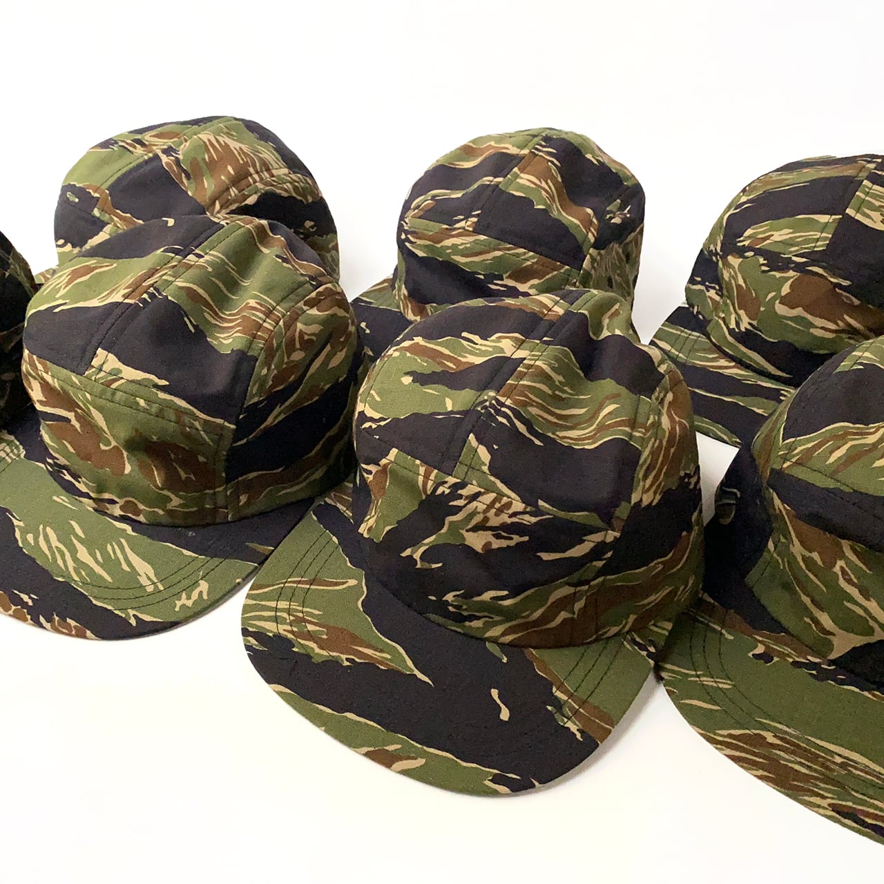 ・タイガーカモのジェットキャップが欲しく、日本の帽子職人さんに作っていただいたきました。店主の個人的な思いから創るリメイクキャップの新型になりますが、今回はリメイクではなく新品の生地を手配し制作。