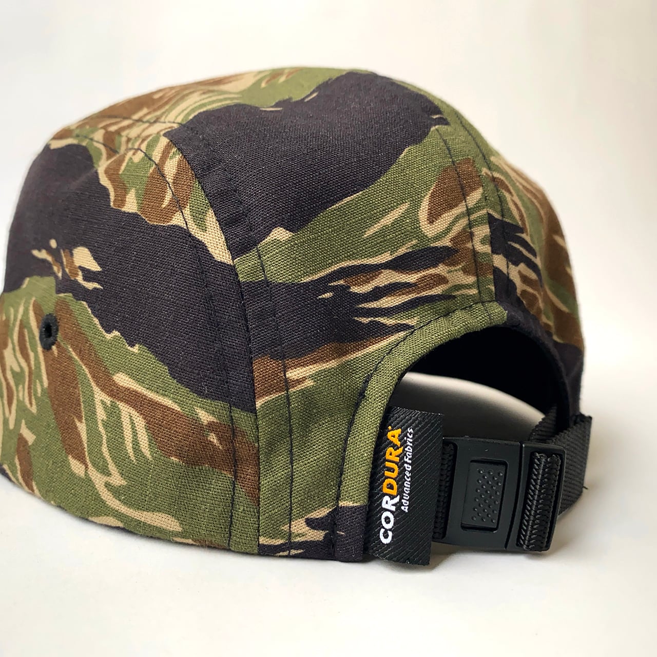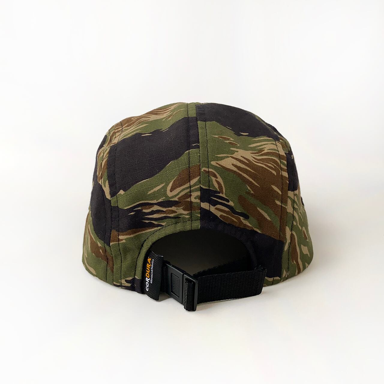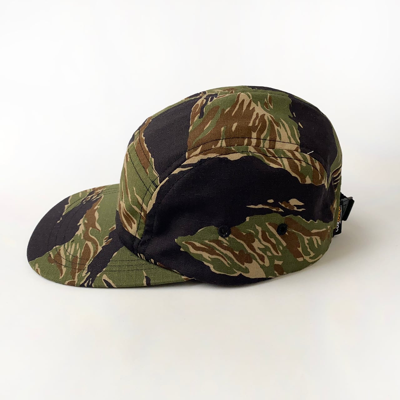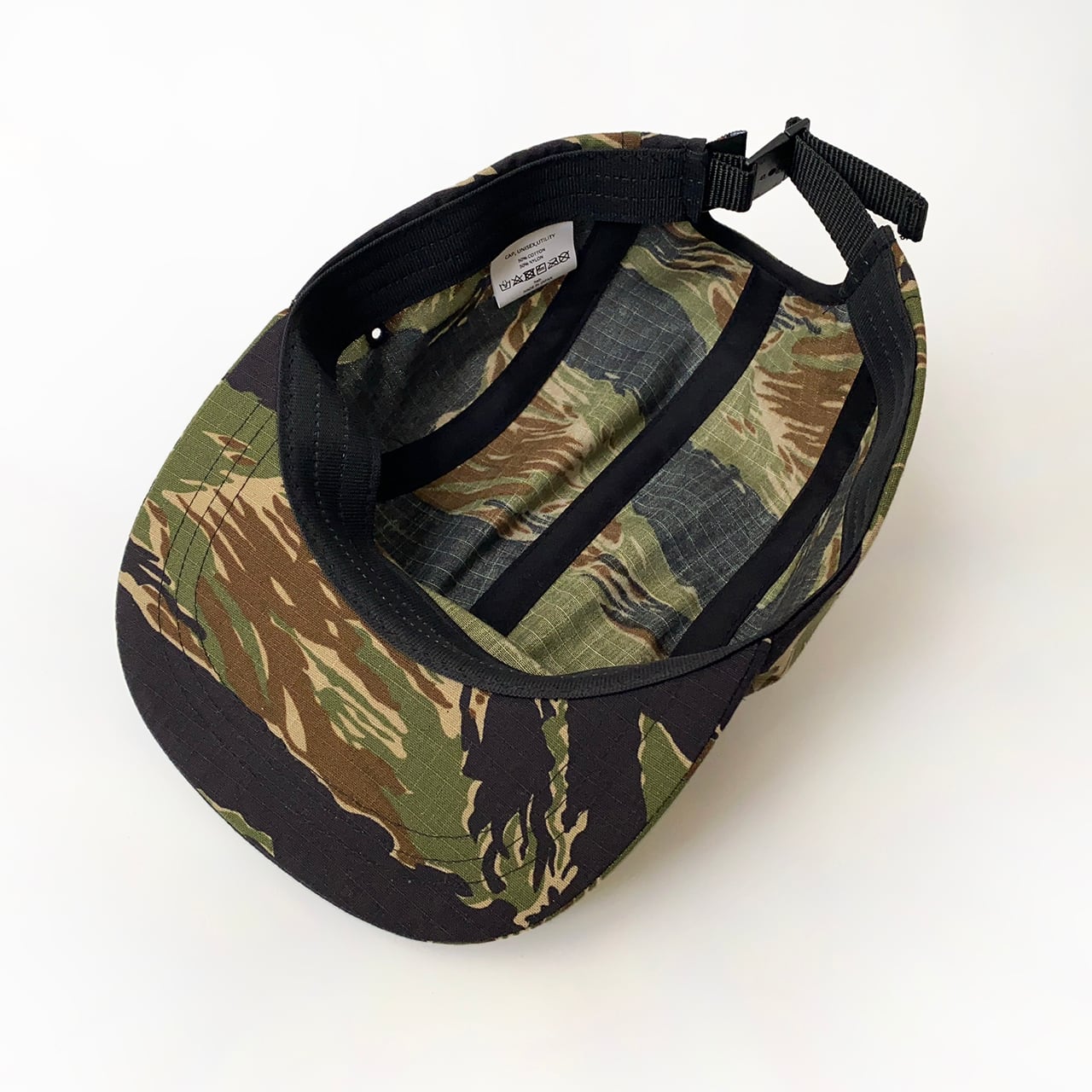 ジェットキャップのスタイルとタイガーストライプの相性が抜群。ナイロン100%にも負けない軽い被り心地で納得の仕上がり。