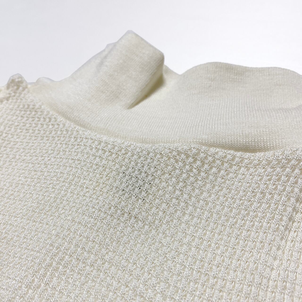 ・アメリカ空軍(USAF)のエアクルー用のアンダーシャツ「CWU-44/P」のデッドストック。難燃性に優れたアラミド素材を使用し、ワッフル編みで伸縮性豊かで体にフィットしてくれます。多少の透け感はありますが、軽やかで柔らかな着心地で秋冬の重ね着に最適です。「ワッフル素材」x「モックネック(ハイネック)」という、独自のデザインが他にはない魅力となっています。