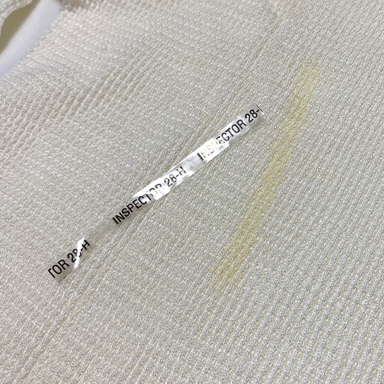 ※背中側に「INSPECTOR(検査済み的な意味)」テープの粘着物質の跡がございます。シールが取れて付いていない場合もございます。(部分的に揉み洗いし洗濯機で洗うと綺麗になると思います。)